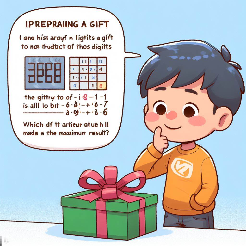 Sugeng sedang menyiapkan hadiah untuk ulang tahun seorang teman. Dia memiliki array n digit dan hadiahnya adalah hasil kali dari semua digit tersebut. Karena Sugeng adalah anak yang baik yang ingin membuat perkalian sebesar mungkin, dia ingin menambahkan 1 ke salah satu digitnya.